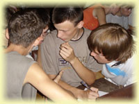 Вчера в ЛАНе стартовали интеллектуальные игры. Организаторы решили проверить ум и эрудицию собравшихся, задавая непростые вопросы «ЧТО? ГДЕ? КОГДА?». В игре приняли участие 30 команд, в составе которых были студенты Летней Академии и 5 - внеконкурсных. Наблюдение показало, что участники глубоко задумывались еще до начала игры, выбирая названия команд. Мы искренне надеемся, что у игроков,