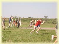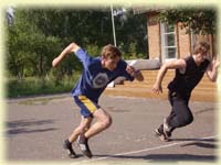 На волейбольном поле находилась станция «Тройной прыжок». Михаил Семенович Кеслер и Галяветдинова Альфия Анваровна «расчертили» песок и измеряли дальность полета в прыжке. Здесь отличились: Чусовитин Петр, Бондаренко Александр, Фитков Андрей, Перфильева Дарья, Ашихина Арина, Ильина Дарья.